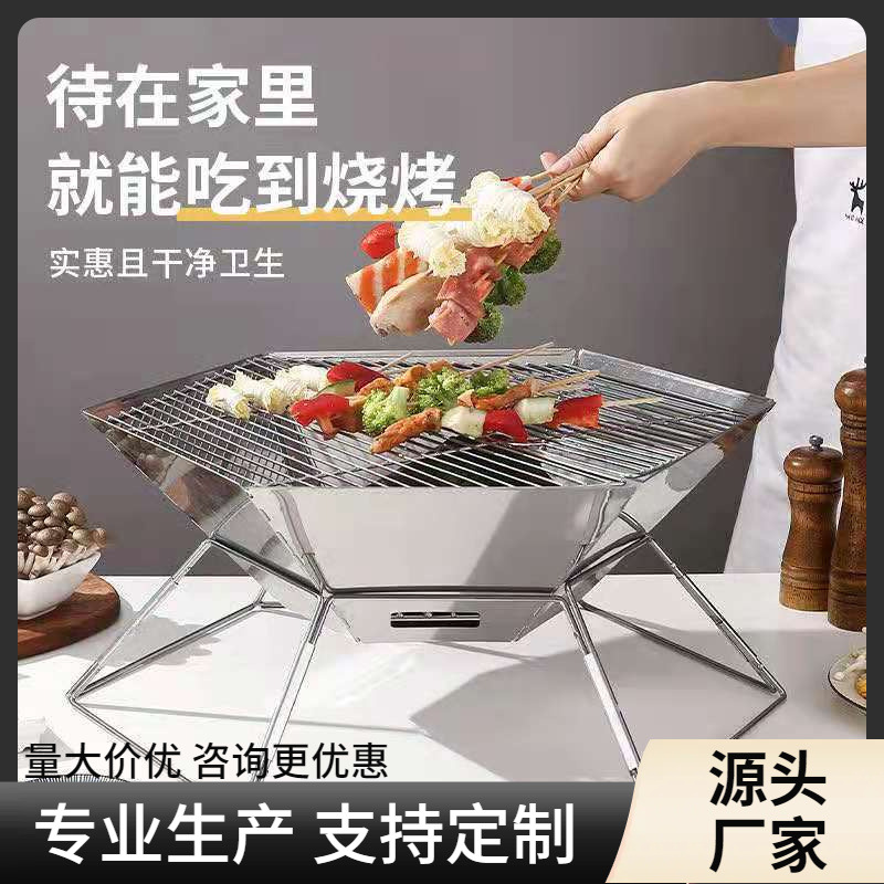 Piknik lipat baja tahan karat kompor barbekyu portable luar ruangan BBQ swalayan panggang untuk 2-5 orang dengan tas penyimpanan