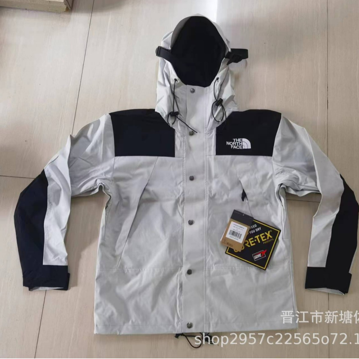 Jaket pasangan, jaket gaya Amerika pria dan wanita 1990 untuk mendaki gunung luar ruangan tahan angin tahan air tnf North Face bertudung