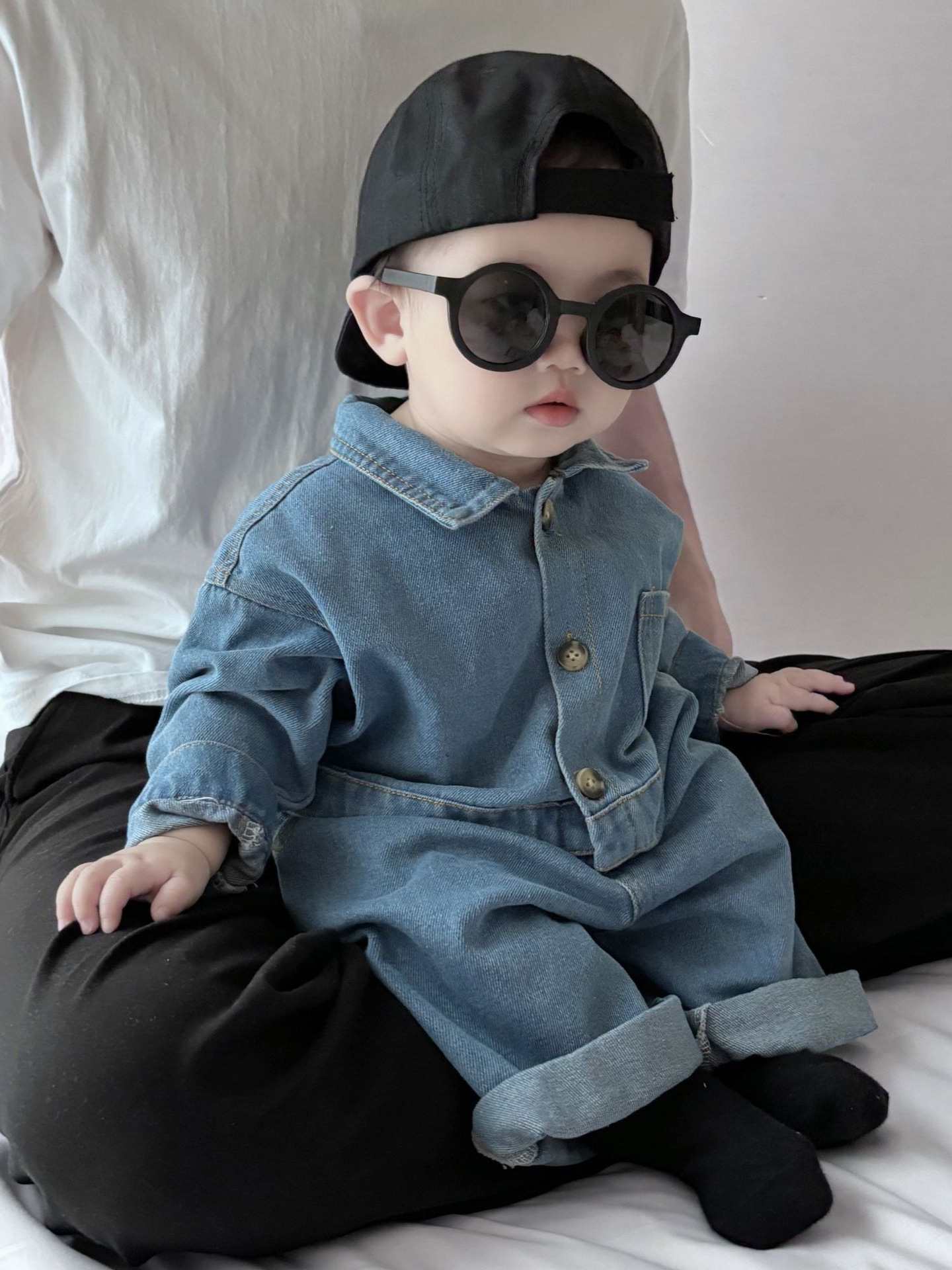 Pakaian bayi musim semi dan musim gugur bayi laki-laki jumpsuit Denim Musim Semi modis gaya Korea bayi awal musim semi romper Tamasya