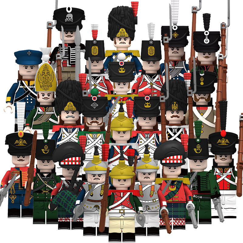 Prajurit Napoleon kuno berbaris infanteri Rusia Marshal Prusia Rusia mengumpulkan mainan blok bangunan