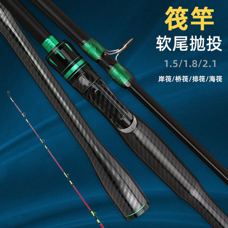 Tiang pancing rakit bank rakit tembakan panjang, tongkat pancing rakit ekor lunak kait tali pancing rakit pedas diced tulang kuning