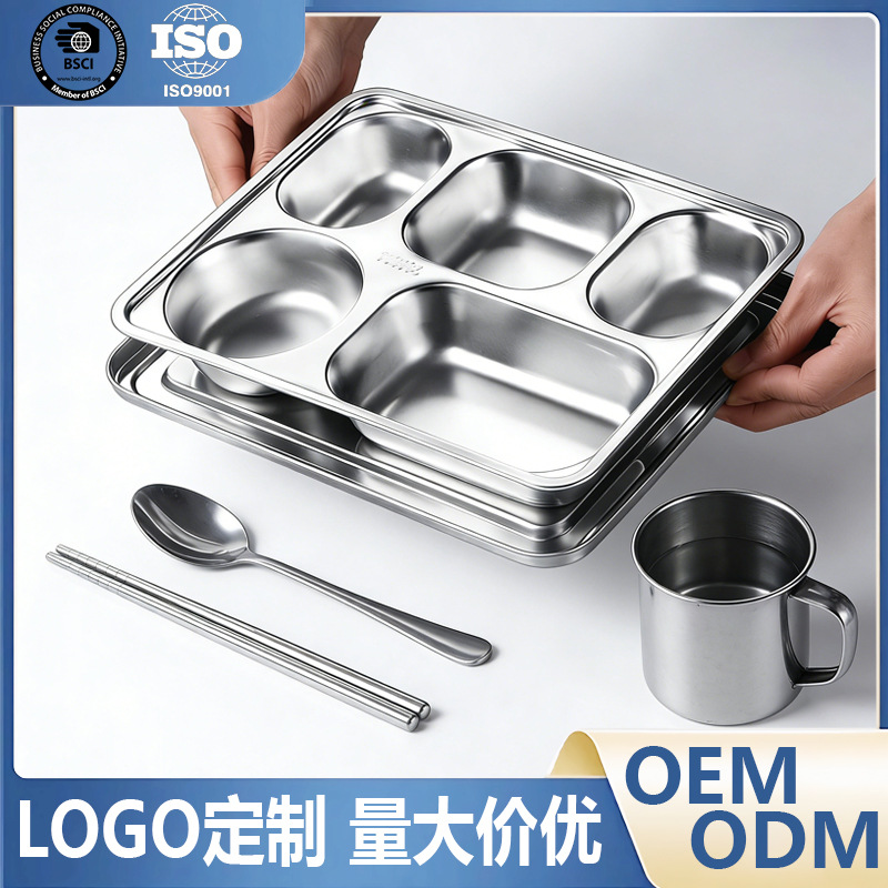 Grosir Pabrik piring Makanan Cepat tebal dengan tutup terpisah piring kantin siswa 304 piring baja tahan karat