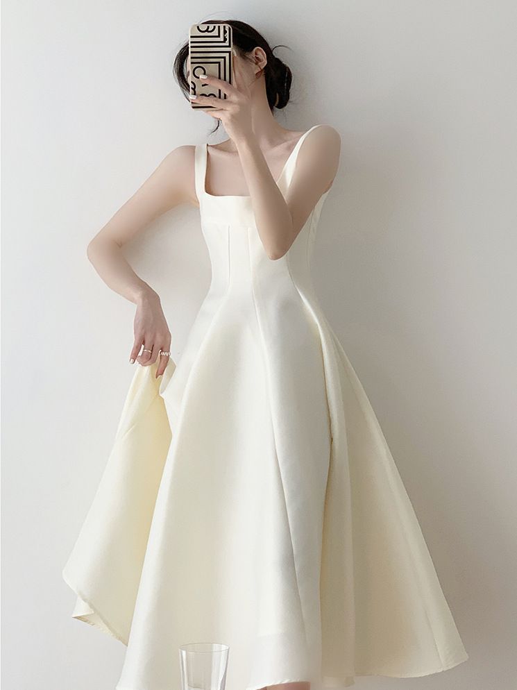 Gaun pernikahan gaya Perancis, warna solid satin sederhana kecil Upacara dewasa pesta perjamuan gaun malam bisa dipakai di waktu biasa