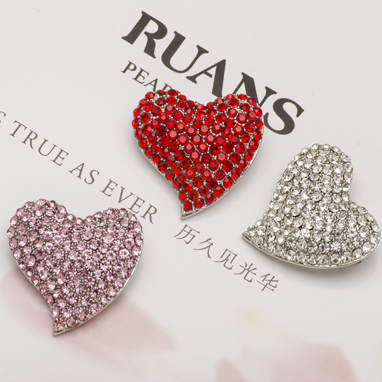 Mengzicai perhiasan gaya Korea grosir sampel disesuaikan 3 warna berlian imitasi korsase lucu bros berbentuk hati pin hati persik