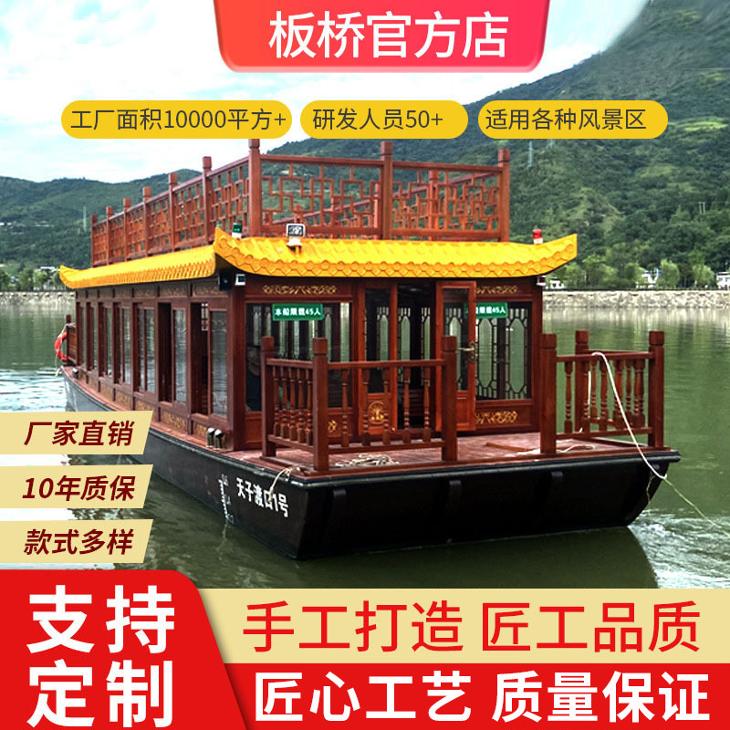 Banqiao kapal wisata elektrik, perahu kayu perjalanan listrik 14 m lukisan perahu antik kapal pesiar Cina akomodasi perahu katering