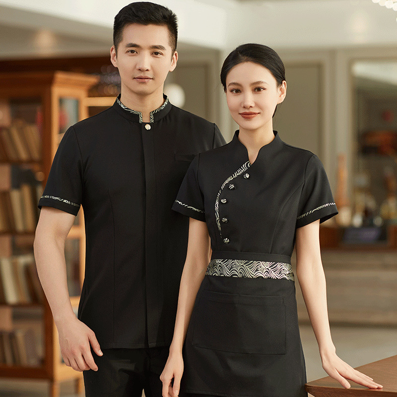 Baju kerja pelayan rumah teh lengan pendek, baju kerja wanita dan pria, baju restoran, pot panas, restoran, restoran china, baju kerja pria dan wanita musim panas