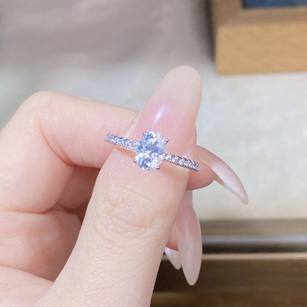 Siaran langsung Populer 1 karat cincin moissanite berbentuk oval empat-cakar cincin wanita perak sterling ins segar sederhana
