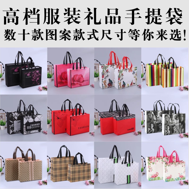 Tas tangan toko pakaian pria dan wanita tas belanja film non-tenun tas Kecil Sedang ukuran besar dapat menahan hadiah bulu logo cetak kustom