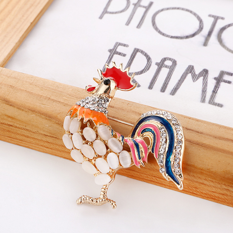 Bros ayam jantan batu mata kucing baru dua belas zodiak hewan corsage tahun lahir perhiasan pakaian aksesori pin grosir