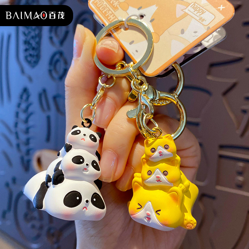 Baimao pesta hewan asli Jenga gantungan kunci wanita lucu panda katak kartun gantungan kunci tas sekolah liontin