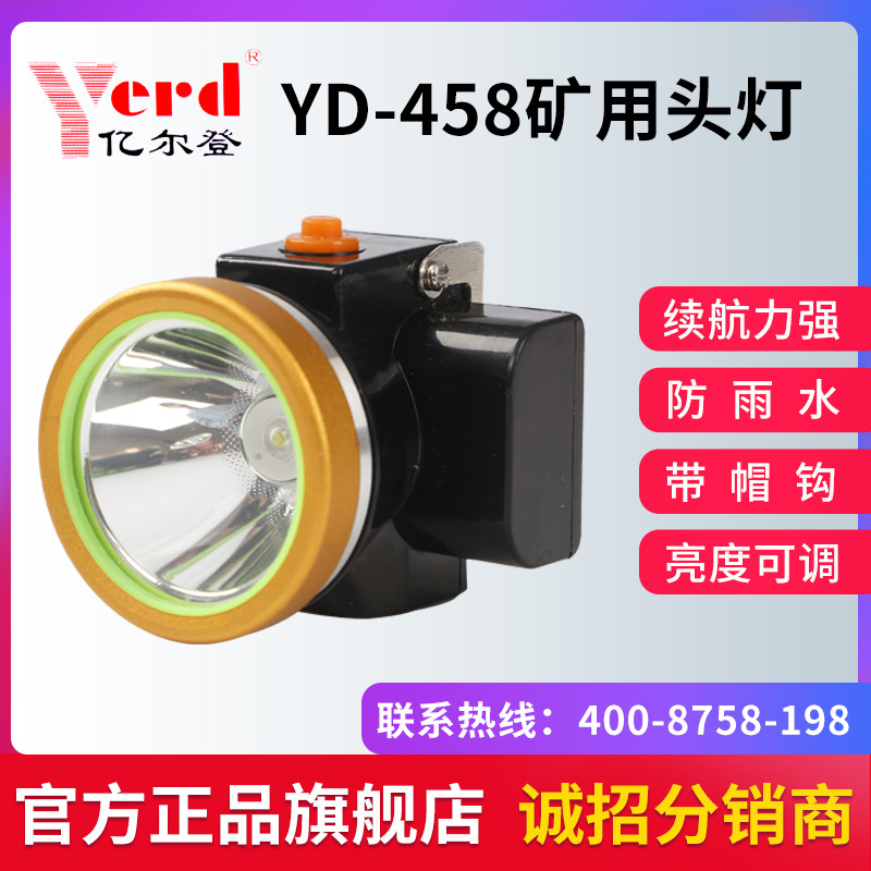Yierdeng lampu kepala penambang, cahaya kuat dapat diisi ulang baterai lithium 458 tahan air memancing luar ruangan