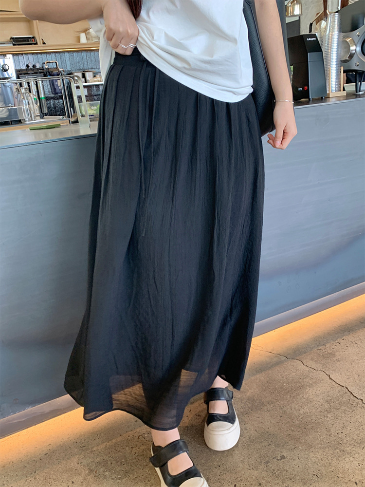 Rok wanita ukuran besar, Rok midi gaya Korea elegan Semua cocok pinggang tinggi warna solid menutupi daging musim panas