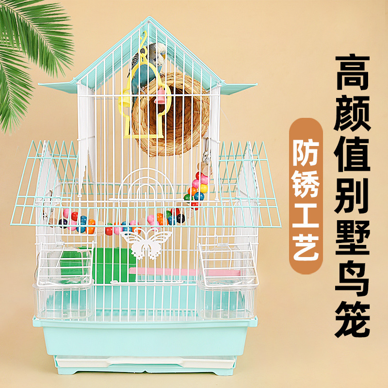 Sangkar burung bayan kulit harimau kandang burung hidup Xuanfeng suapan saudara berjemur alis menniao set lengkap lapisan ganda kecil sedang mewah kandang besar