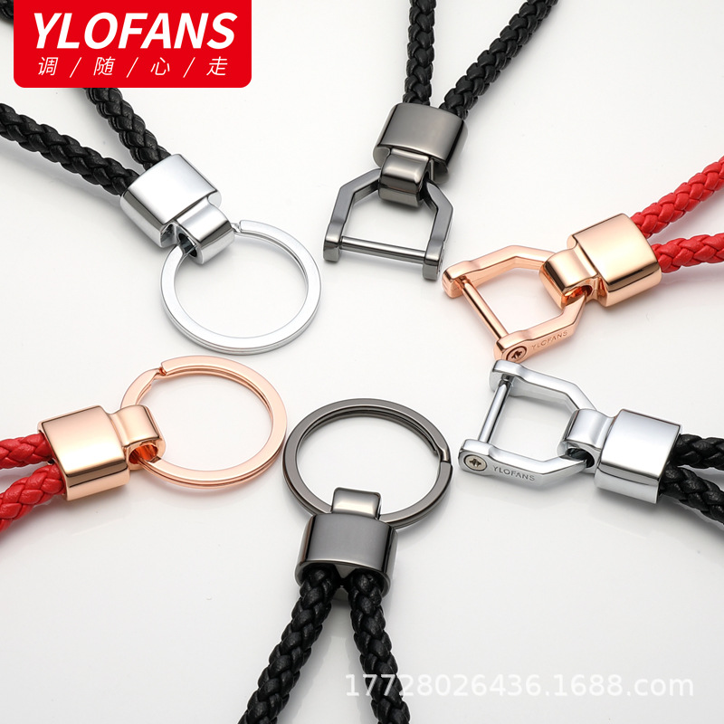 Gantungan kunci genggam pria dan wanita, rantai kunci tali kulit tenun kreatif sederhana pegangan tangan