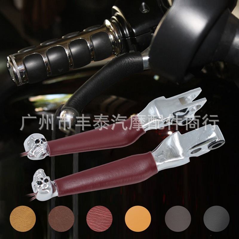 Aksesoris Sepeda motor kulit pegangan tuas rem kopling tengkorak krom pelindung kulit Harley Dai Na ekor lembut 96-10