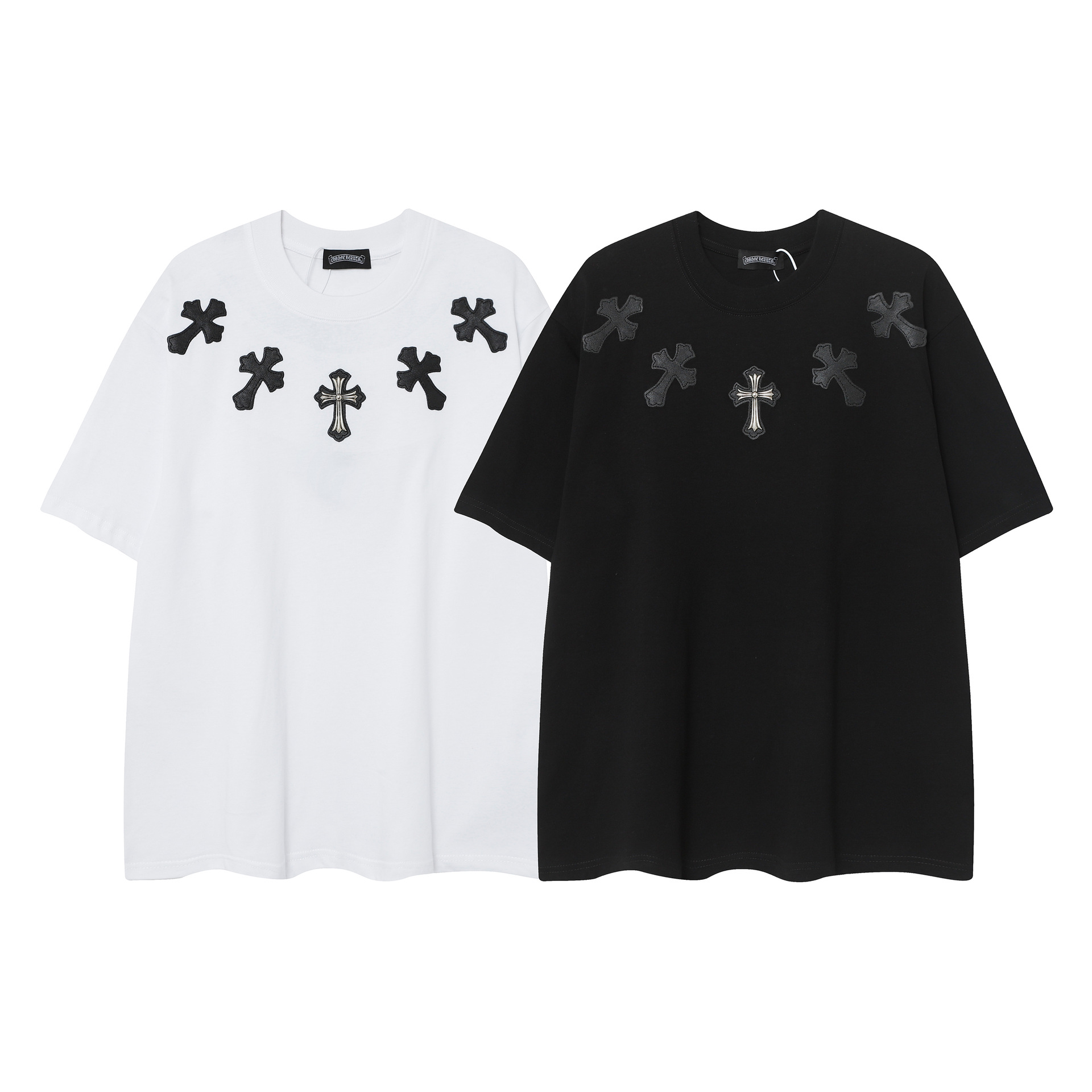 Kaus croe hati krom versi tinggi baru 24 logo kulit logam silang pasangan Sanskerta T