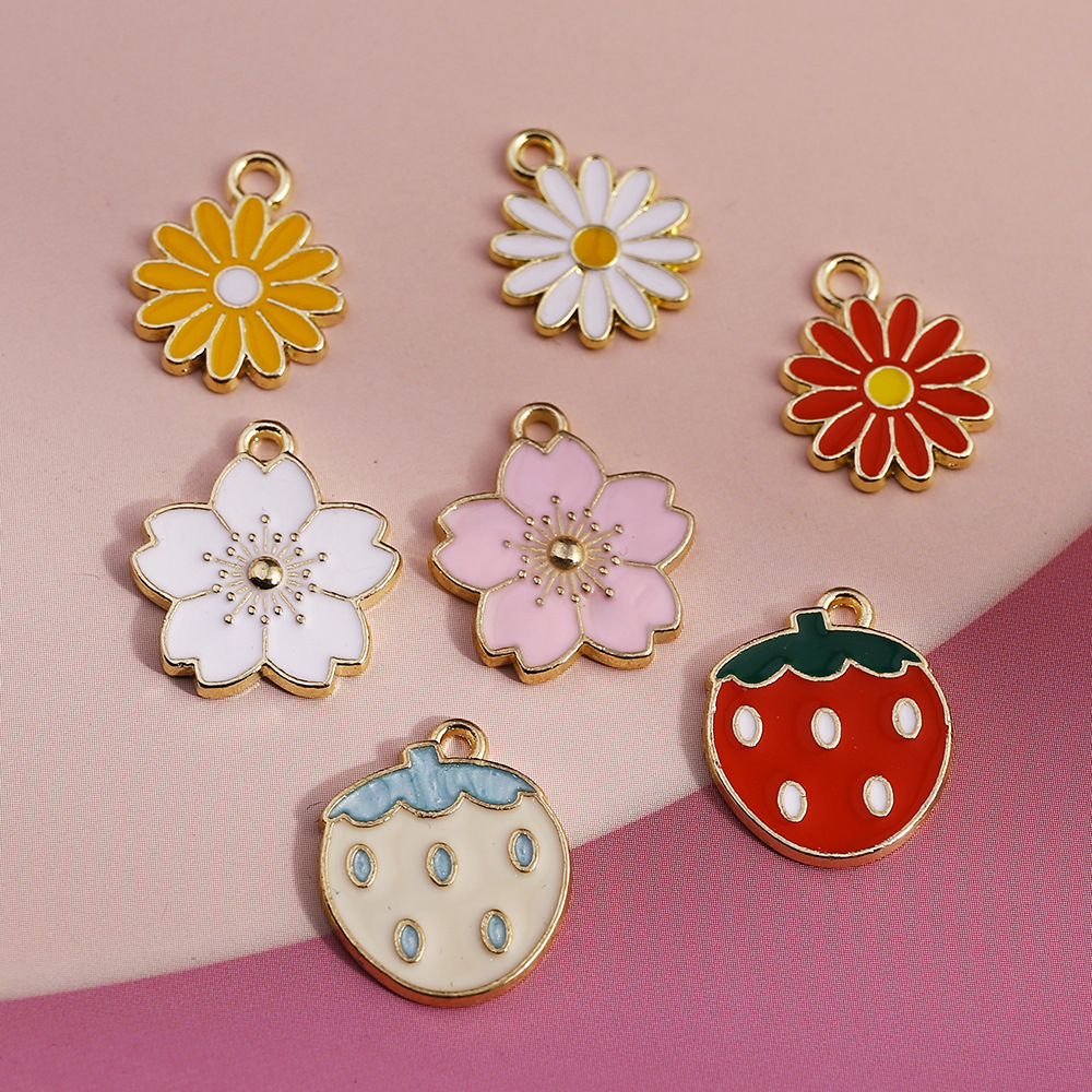 Aksesori Perhiasan DIY baru minyak Aloi seng menetes bunga sakura gelang liontin bunga lima-kelopak bahan liontin ponsel grosir