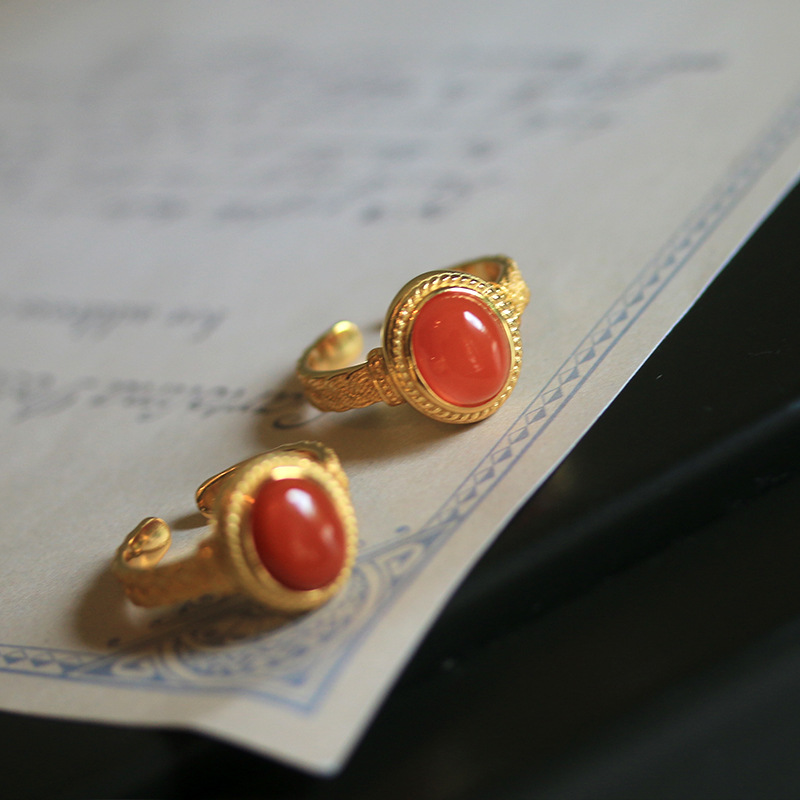 Cincin batu akik merah Selatan batu mentah alami s925 cincin bertatah berlapis emas perak sederhana dapat disesuaikan trendi semua cocok perhiasan untuk wanita