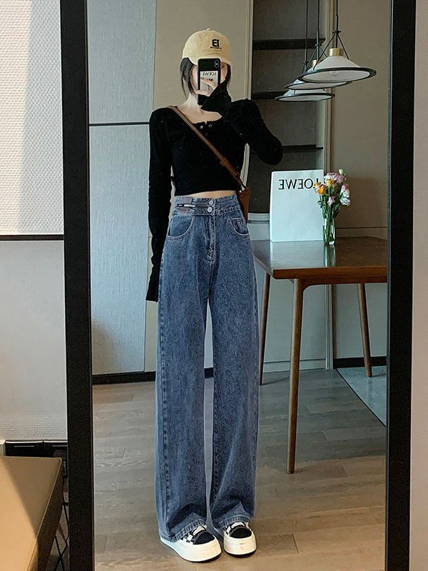 Celana Jeans Lurus Versi Sempit Wanita Celana Kaki Lebar Terlihat Tinggi Terlihat Langsing Pinggang Tinggi Tubuh Kecil Model Baru Musim Semi Musim Gugur 2025