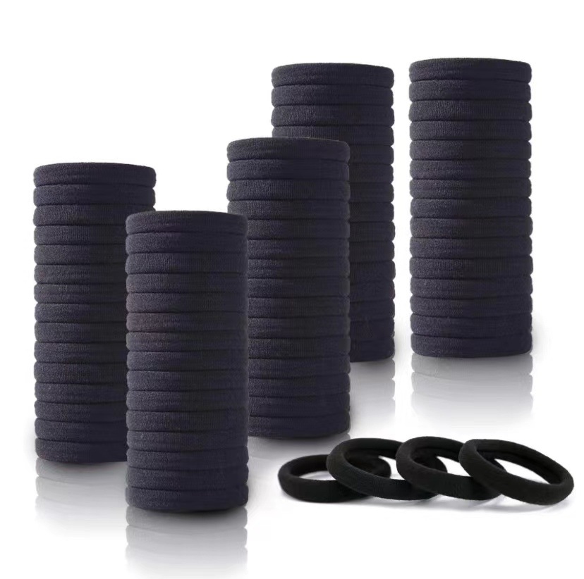 Cincin handuk hitam elastis 5cm, cincin rambut ikat rambut sederhana yang tahan lama, mulus hitam besar