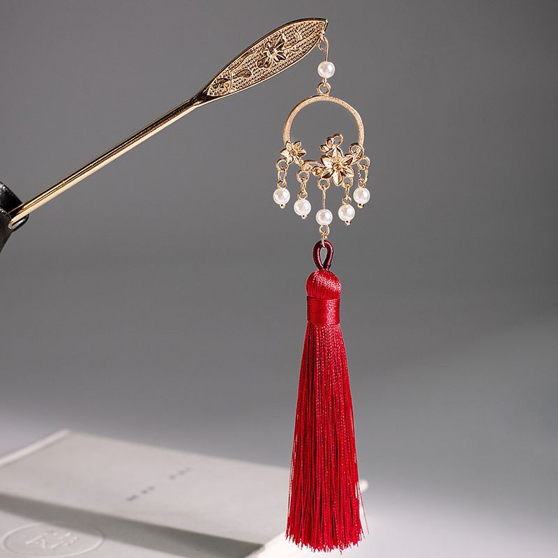 Hanfu hiasan kepala gaya kuno jepit rambut rumbai langkah goyang pengantin rakun kostum kuno aksesori rambut kelas tinggi rasa peri updo foto