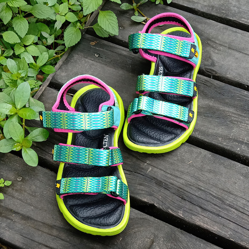 Sandal velkro datar untuk wanita, sepatu olahraga pantai musim panas 2023, sepatu kasual ringan bersirkulasi menyerap guncangan nyaman