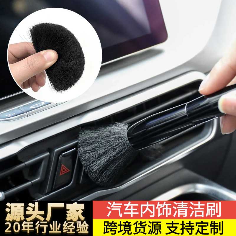 Sikat pembersih detail rambut mobil, setelan 2 buah sikat pembersih celah penghilang debu interior outlet AC mobil