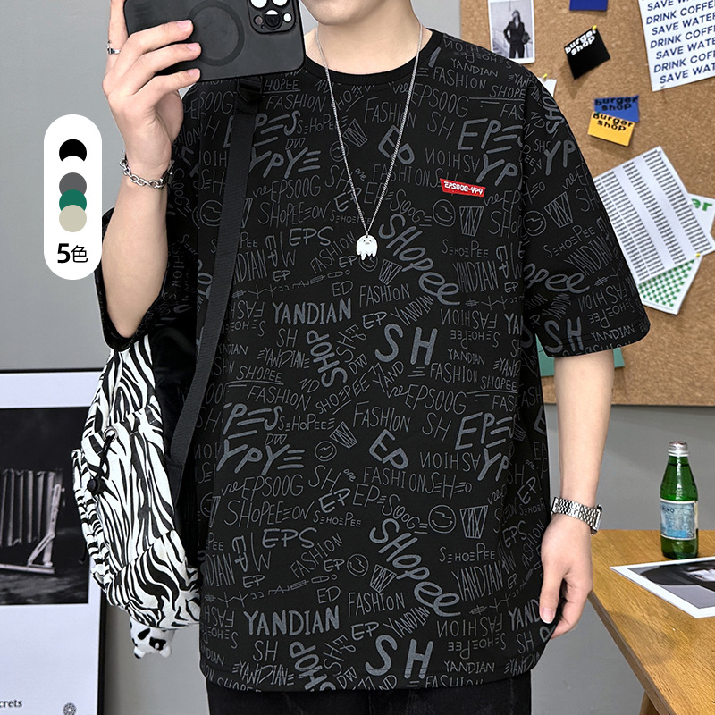 Baju Pria Musim Panas, baju pria lengan pendek, kaus leher bulat bordir, baju pelajar Pria Mode Nasional, baju longgar kasual all-match, kaus leher bulat bordir, model baru, musim panas