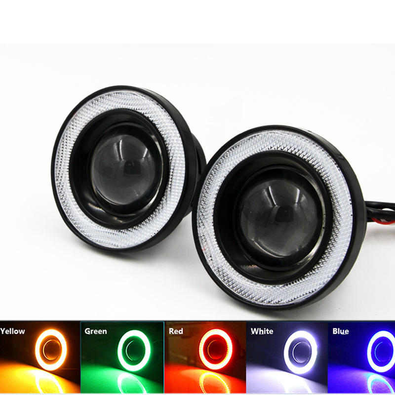 Lensa led remote control warna-warni lampu kabut mata iblis cob Angel eye ox lampu kabut modifikasi fish eye lampu berjalan siang hari 4-inci