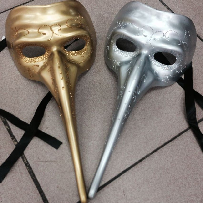 Topeng karnaval pesta topeng emas dan perak masker hidung panjang topeng pertunjukan Halloween