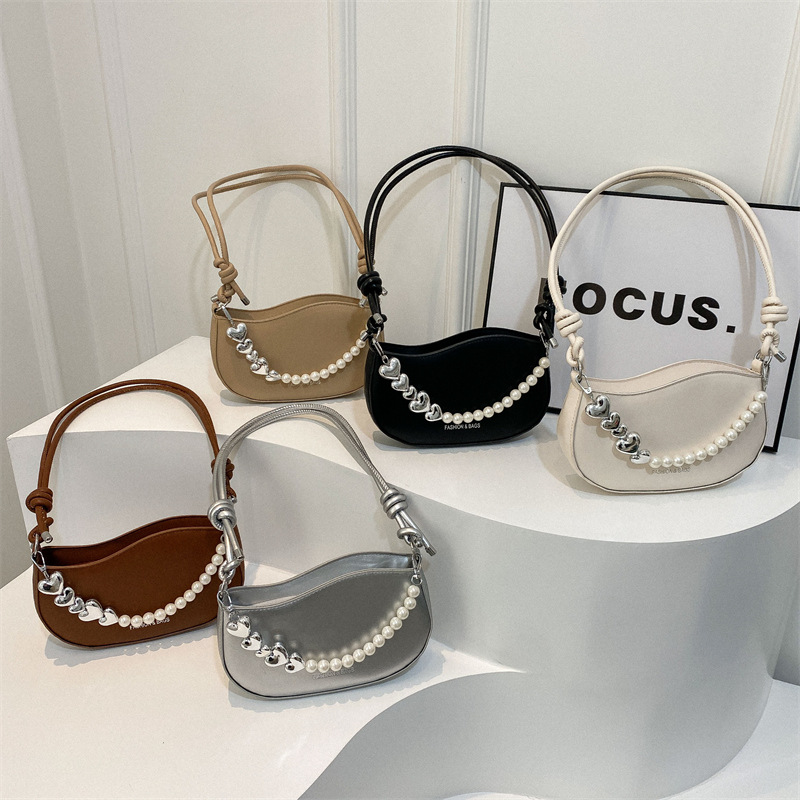 今年流行PU2024新款潮流珍珠通勤单肩时尚简约欧美斜挎手提包包女