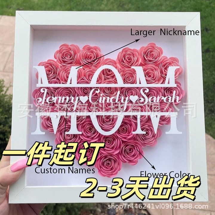 Produk e-commerce lintas batas terlaris: Bingkai foto kotak bayangan bunga berbentuk hati untuk Hari Ibu, kotak bayangan bunga dengan nama, pesanan khusus satu buah.