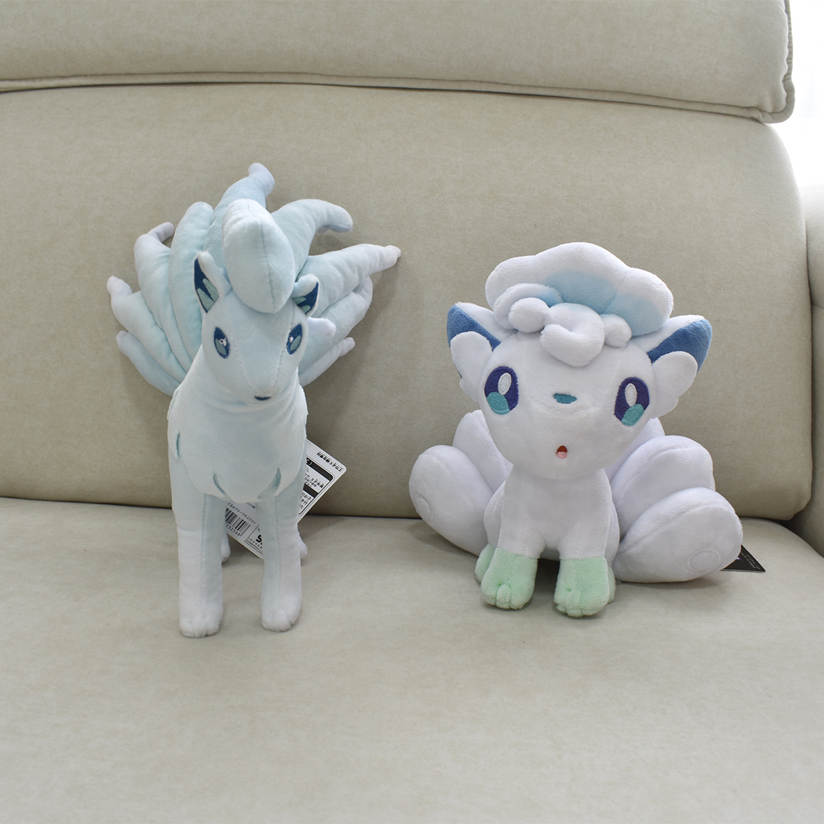 Boneka Elf putih, boneka Pokemon rubah sembilan ekor berdiri es ukuran kecil 20cm ukuran kecil es enam ekor