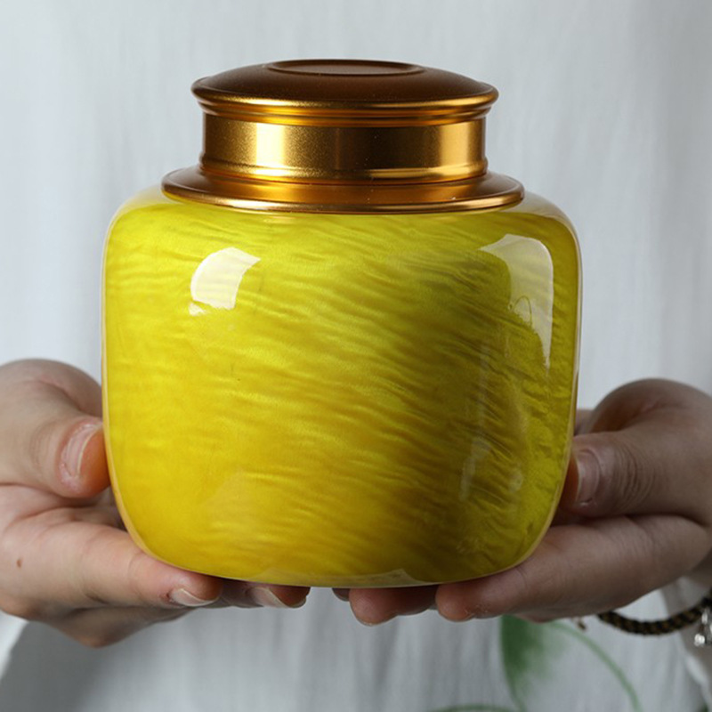 Sutra emas nanmu pot teh big Ye Nan kayu solid kotak teh pot teh tembaga tutup disegel Pu penyimpanan pot teh go jar