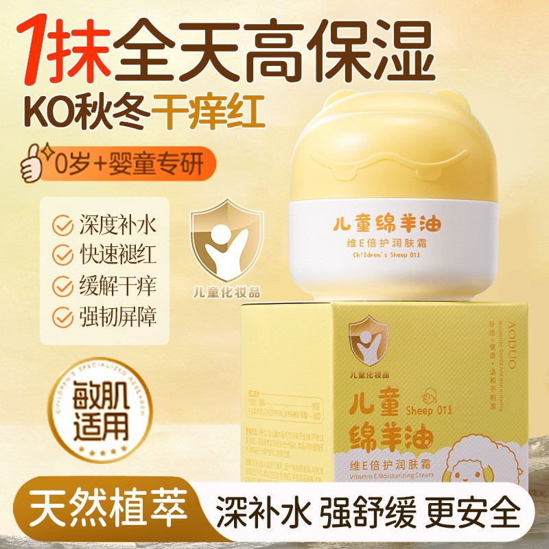 Krim Pelembab Perlindungan Ganda Vitamin E Minyak Lanolin Anak-anak, Krim Wajah Anak-anak yang Melembabkan, Menyegarkan Kulit, dan Tidak Mengiritasi