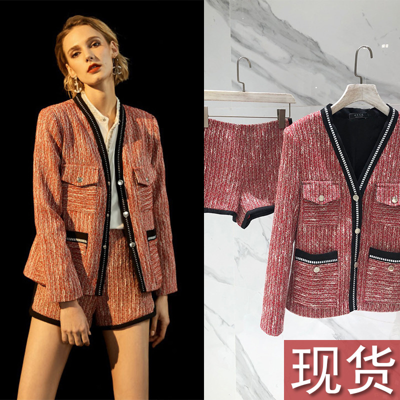 Setelan kardigan wol Xiaoxiang wanita 2019 lengan panjang leher V setelan Musim Semi dan musim gugur dua potong mode gaya Barat S9838