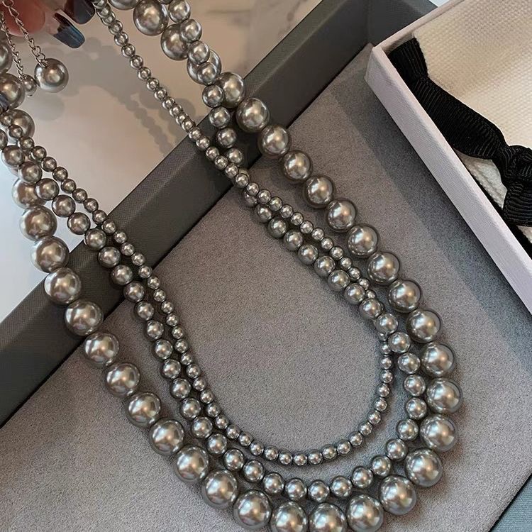 Ni Ni kalung manik-manik Model sama, Kalung mutiara abu-abu terang, rantai sweter kelas tinggi mewah ringan, rantai klavikula butir nasi kecil