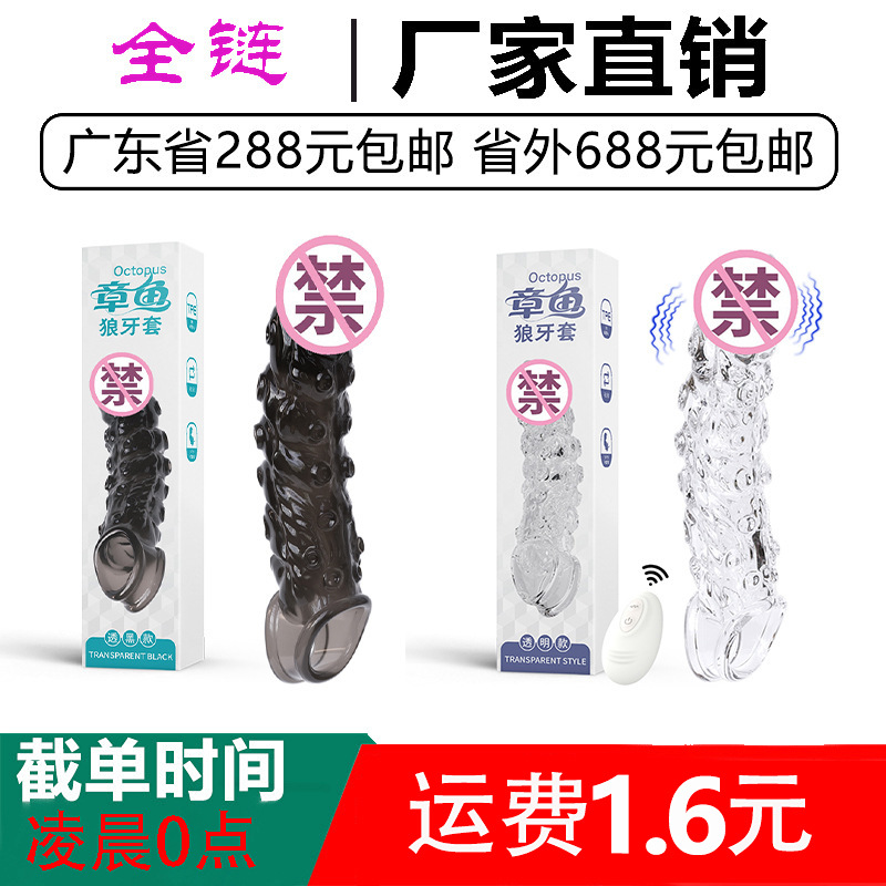 Sarung Gigi Gurita Serigala dengan Sajak Sarung Kristal Getar Benang Benang Sekrup Pria Set Penis Pakaian Produk Seks Pengganti Rambut