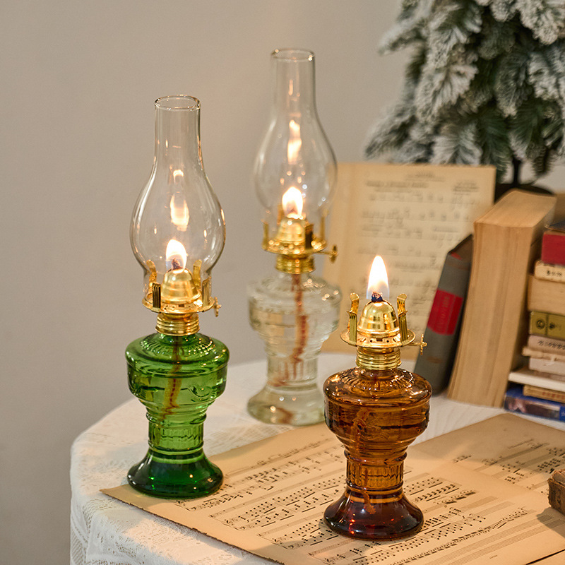 复古玻璃油灯老式怀旧煤油灯家居照明氛围装饰民俗摆件摄影道具