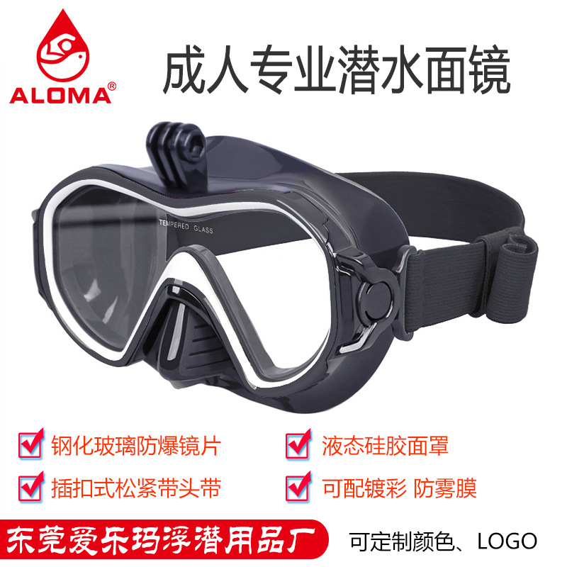 Masker kamera olahraga, braket kamera olahraga snorkeling anti kabut kaca tempered lensa tunggal kacamata selam profesional elastis Bando
