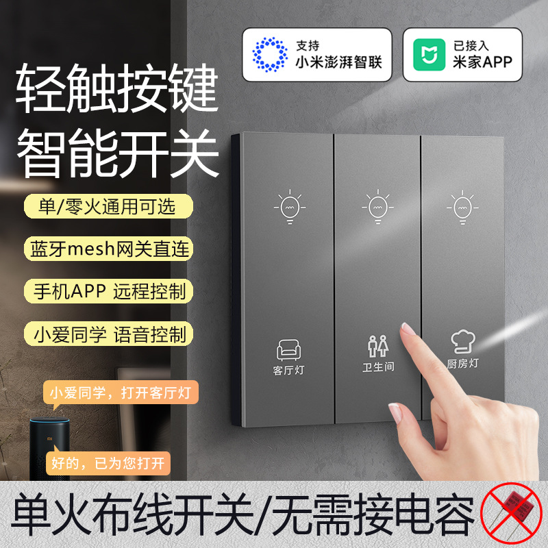 Panel sakelar pintar Zhengshang G3 Bluetooth Mesh mendukung kontrol dan kontrol ganda seluruh rumah nol tunggal telah terhubung ke aplikasi Mijia