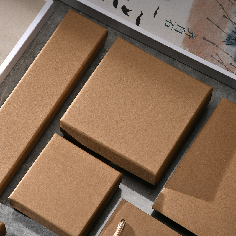 Kotak perhiasan kertas Kraft warna polos, kotak perhiasan anting-anting kancing gelang jam tangan liontin jepit rambut, kotak hadiah Aksesori rambut