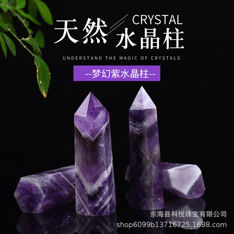 Pasokan langsung dari pabrik kristal ungu murni alami kolom kristal heksagonal ujung tunggal ornamen kerajinan pemoles batu asli