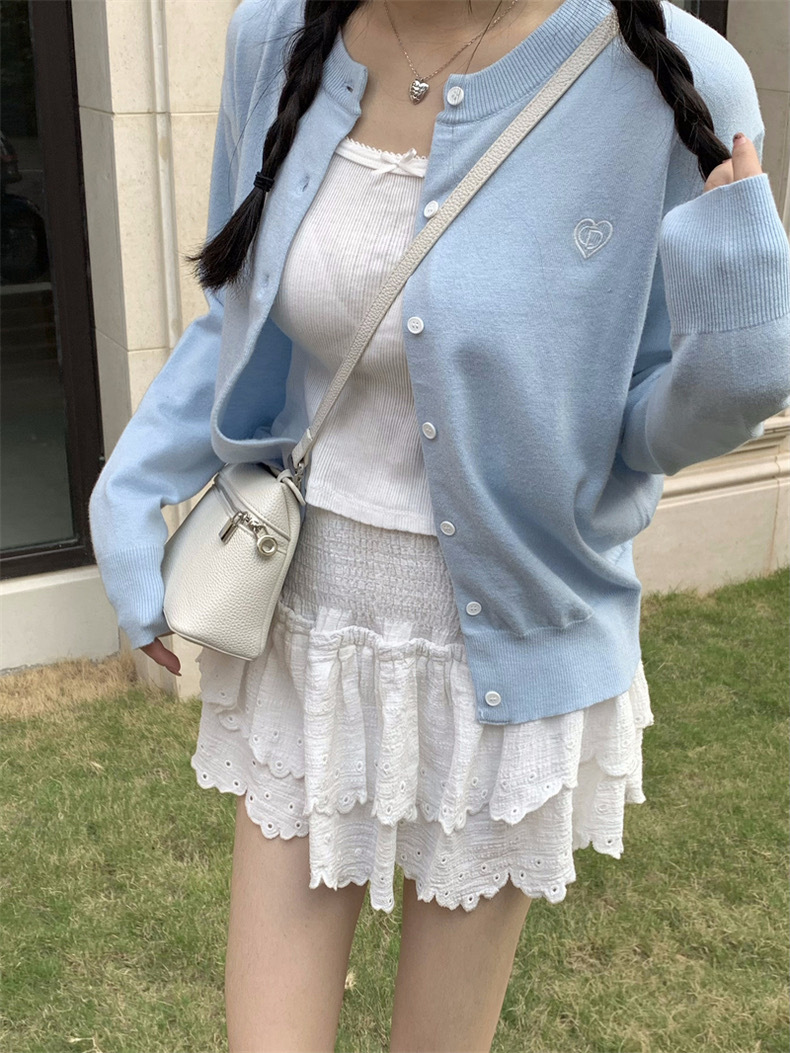 Kardigan rajut kerah bulat lembut bergaya Korea musim semi 2024 atasan tipis pengurang usia manis