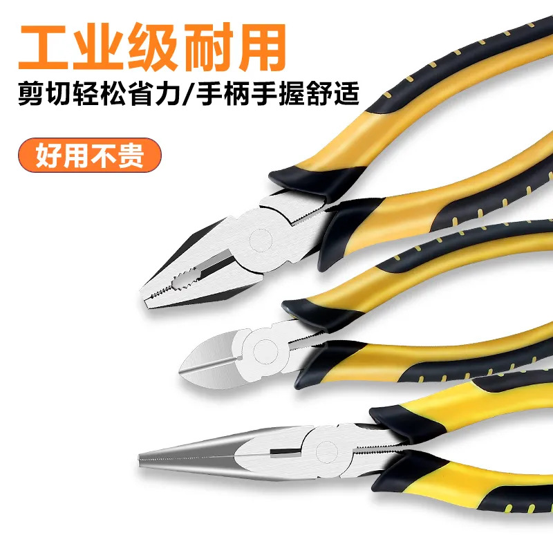 Tang tangan multifungsi kelas industri, tiga tujuan tang kawat mulut runcing tang diagonal khusus alat perangkat keras grosir
