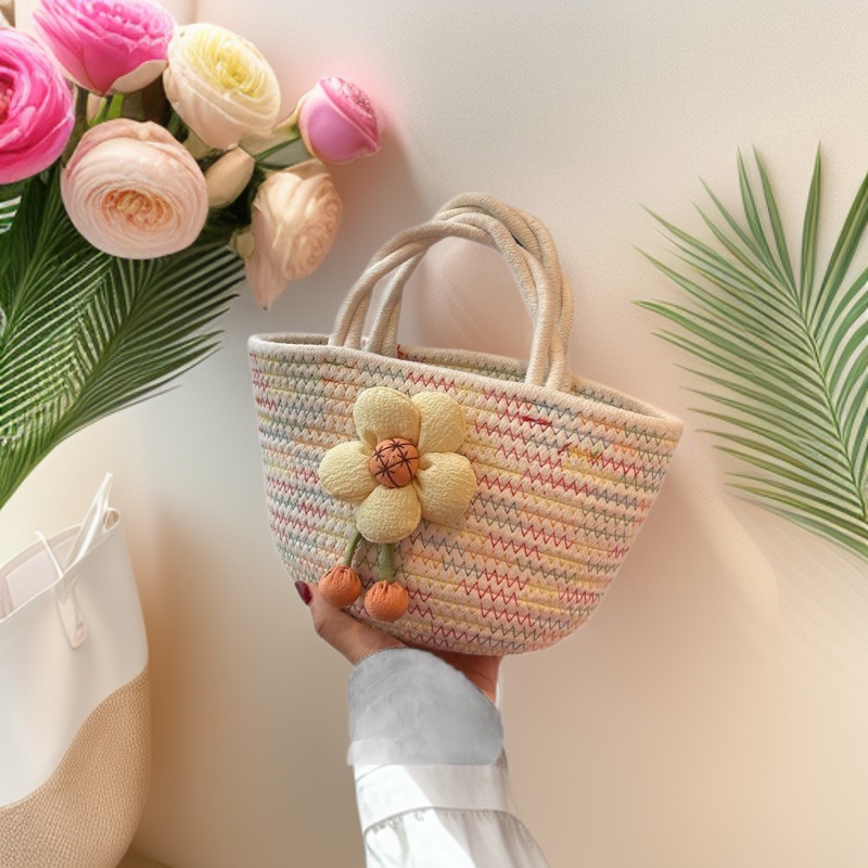 Tas grosir Korea lintas batas model baru 2026 tas tangan wanita musim panas desain unik tas anyaman kasual tali katun