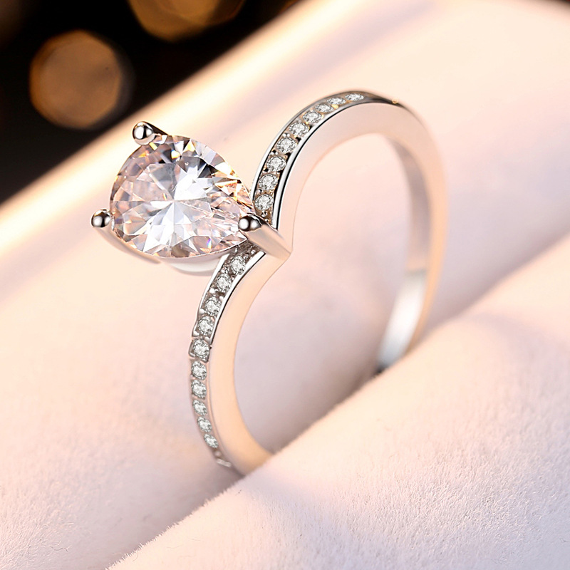 Cincin berlian moissanite mahkota berbentuk drop mode perak 925 cincin berlian karbon tinggi berbentuk cincin perak pemegang cincin grosir
