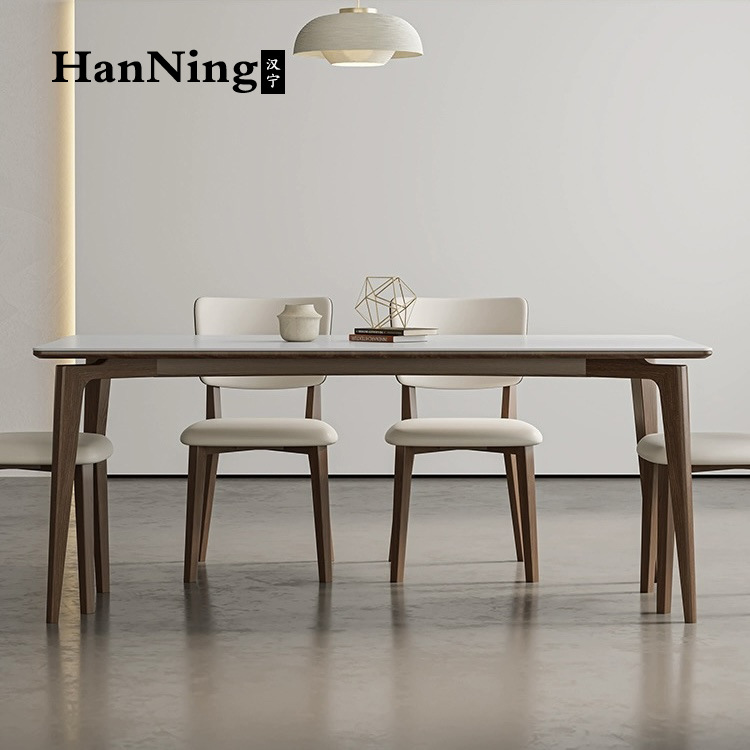 德利丰岩板餐桌现代简约家用小户型实木餐桌新中式长方形吃饭桌子