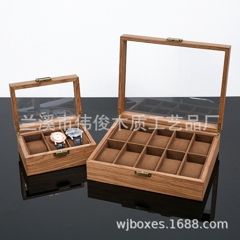 Grosir Pabrik penjualan langsung 3-bit 6-bit 10-bit jam kayu kenari 12-bit kotak penyimpanan cat piano kotak jam kayu solid