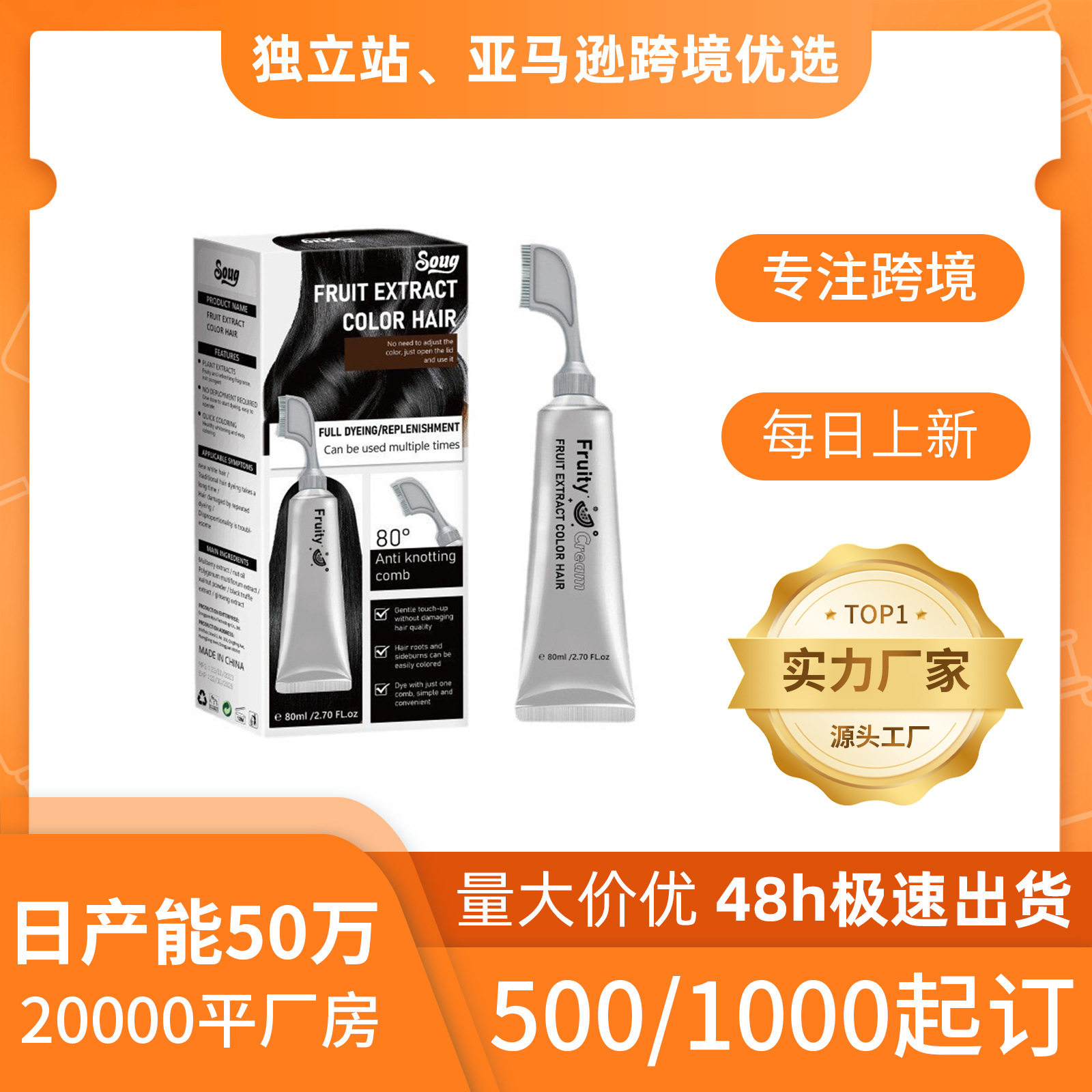 Tanaman pewarna rambut buah dan sayur LUNOON lintas batas tanpa stimulasi hitam di rumah krim pewarna rambut hitam untuk pria dan wanita